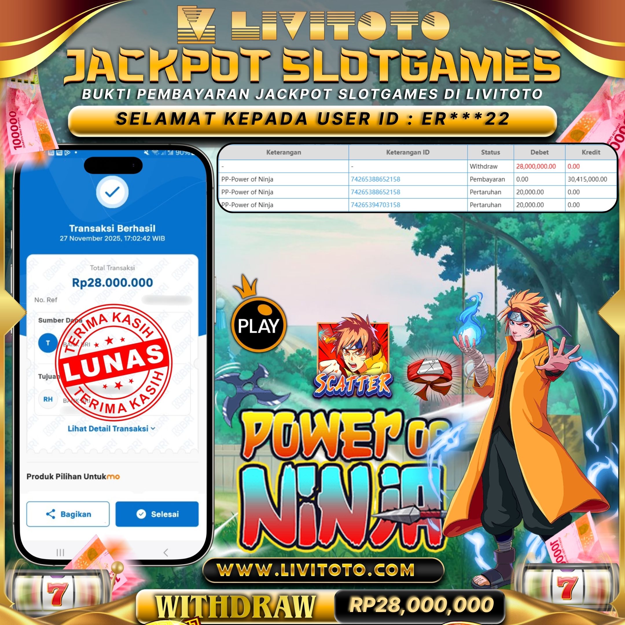 LIVITOTO JACKPOT SLOT Rp 28,000,000,-