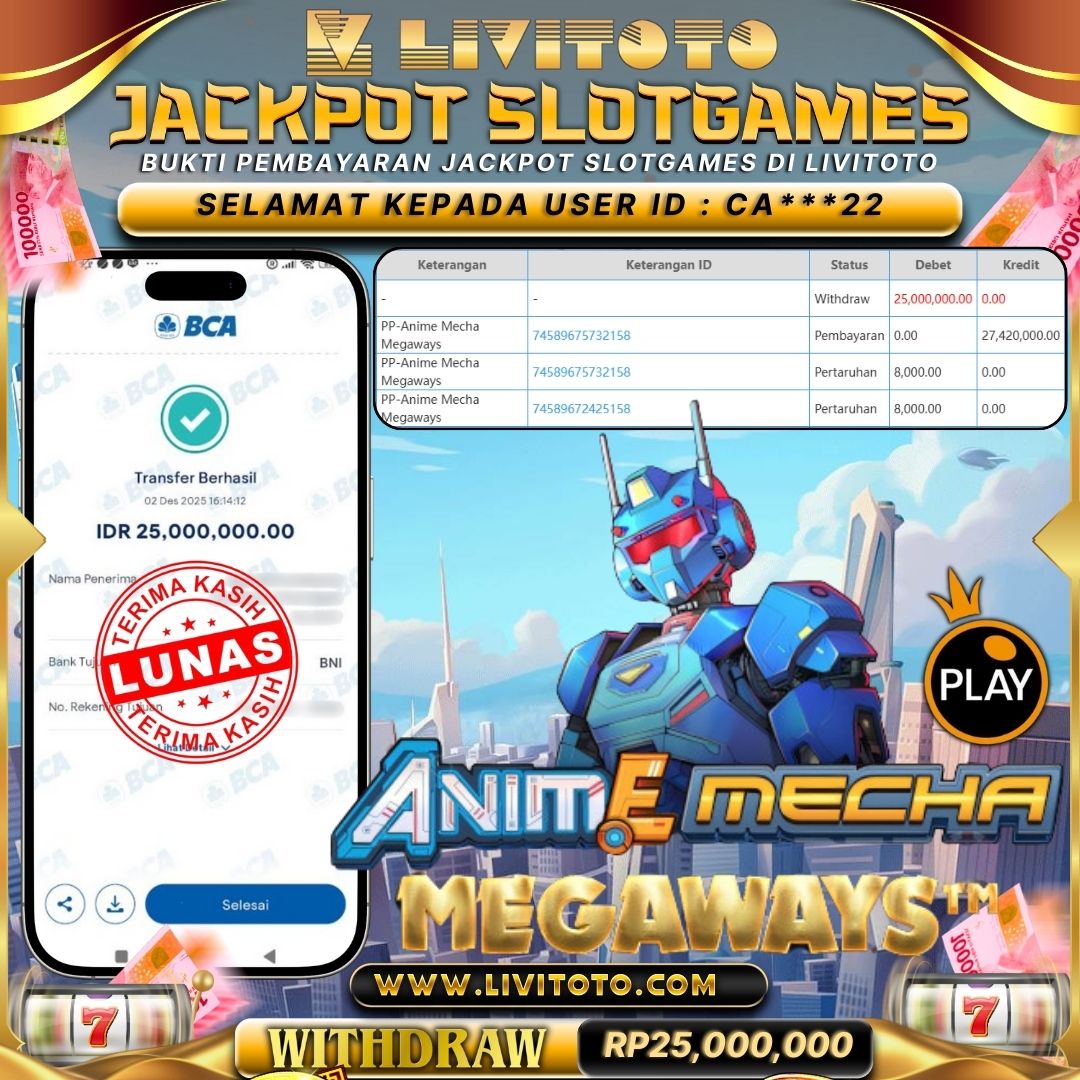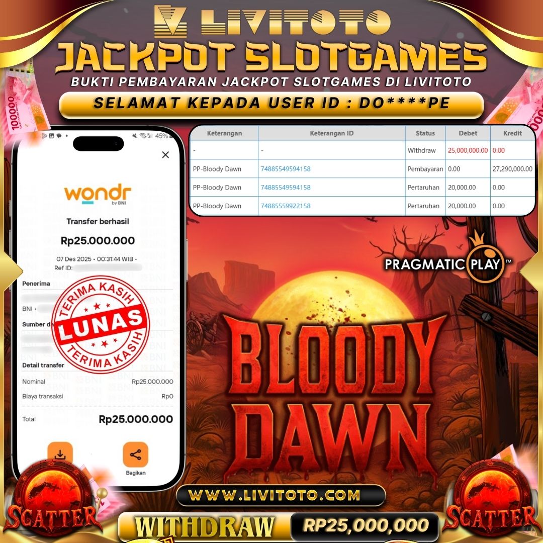 LIVITOTO JACKPOT SLOT Rp 25,000,000,-