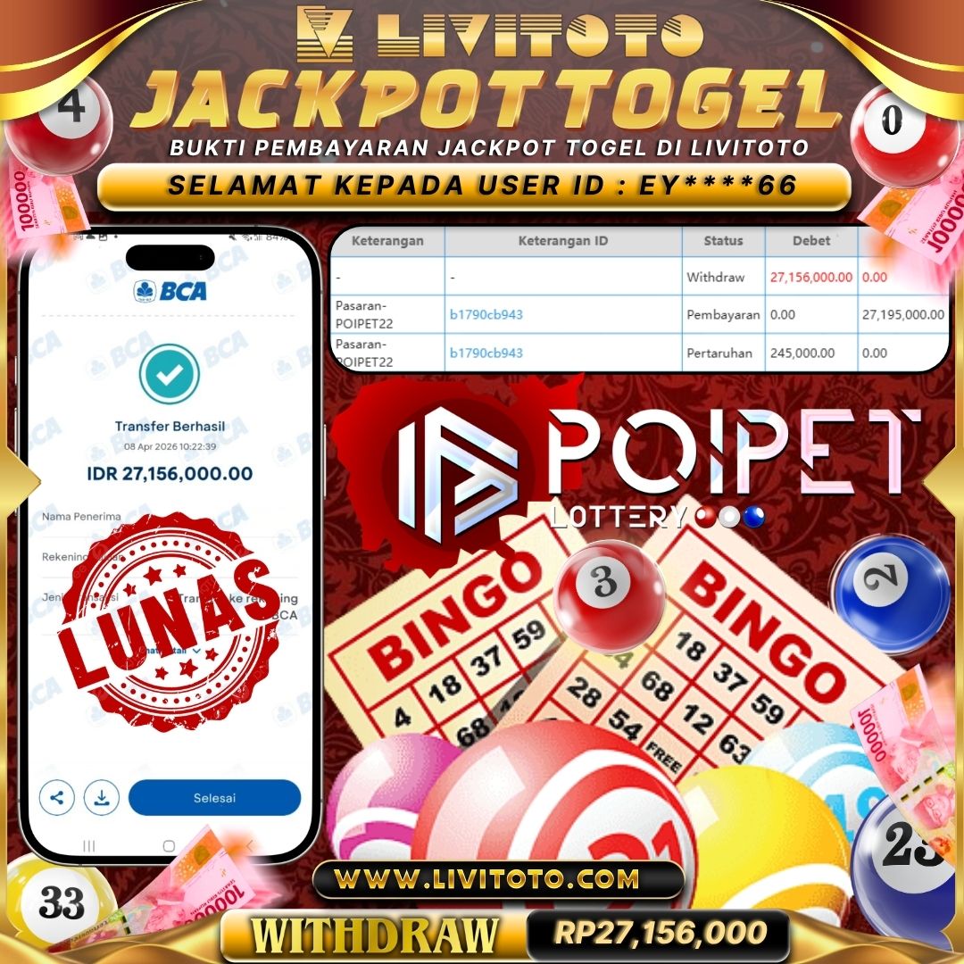 LIVITOTO JACKPOT TOGEL Rp 27,156,000,-