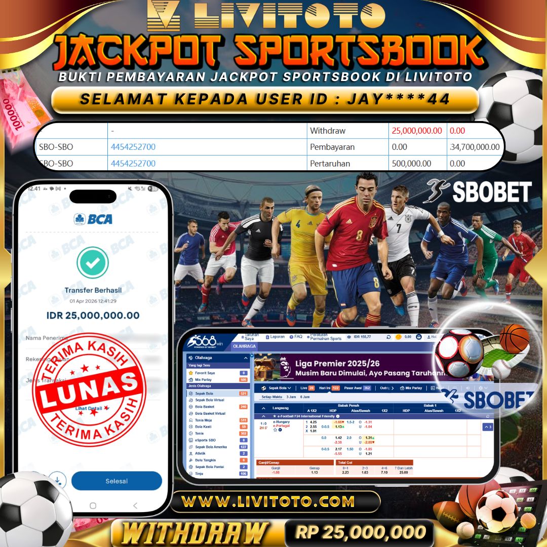 LIVITOTO JACKPOT SPORTSBOOK Rp 27,400,000,-