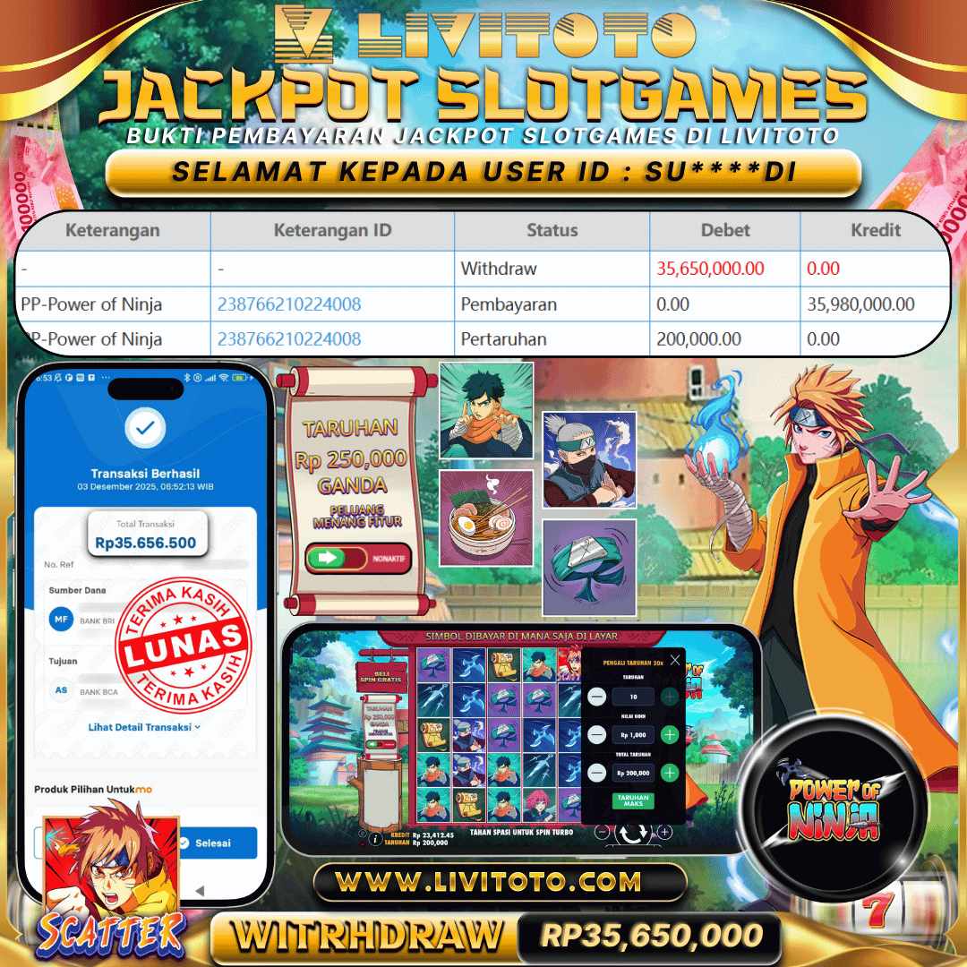 LIVITOTO JACKPOT SLOT Rp 35,000,000,-