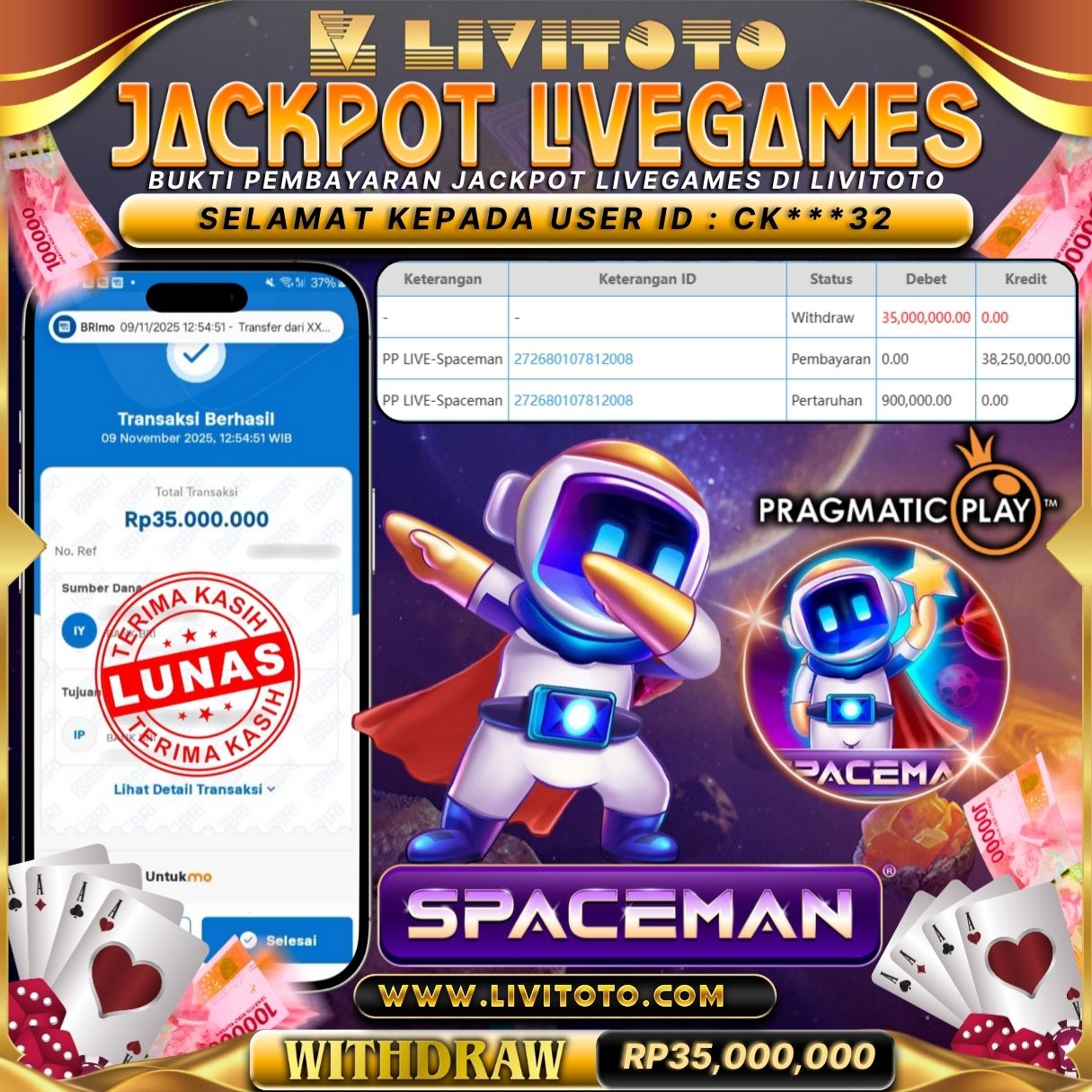 LIVITOTO JACKPOT LIVEGAME Rp 35,000,000,-