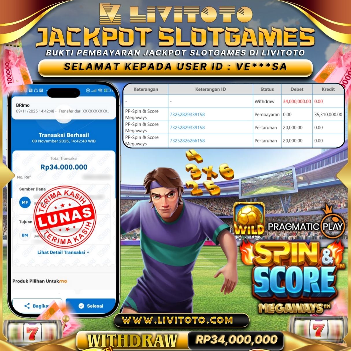 LIVITOTO JACKPOT SLOT Rp 34,000,000,-