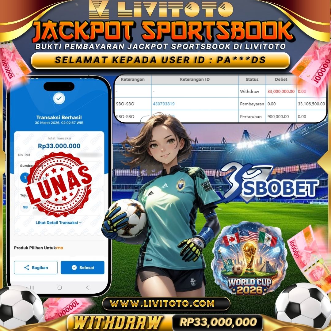 LIVITOTO JACKPOT SPORTSBOOK Rp 33,000,000,-