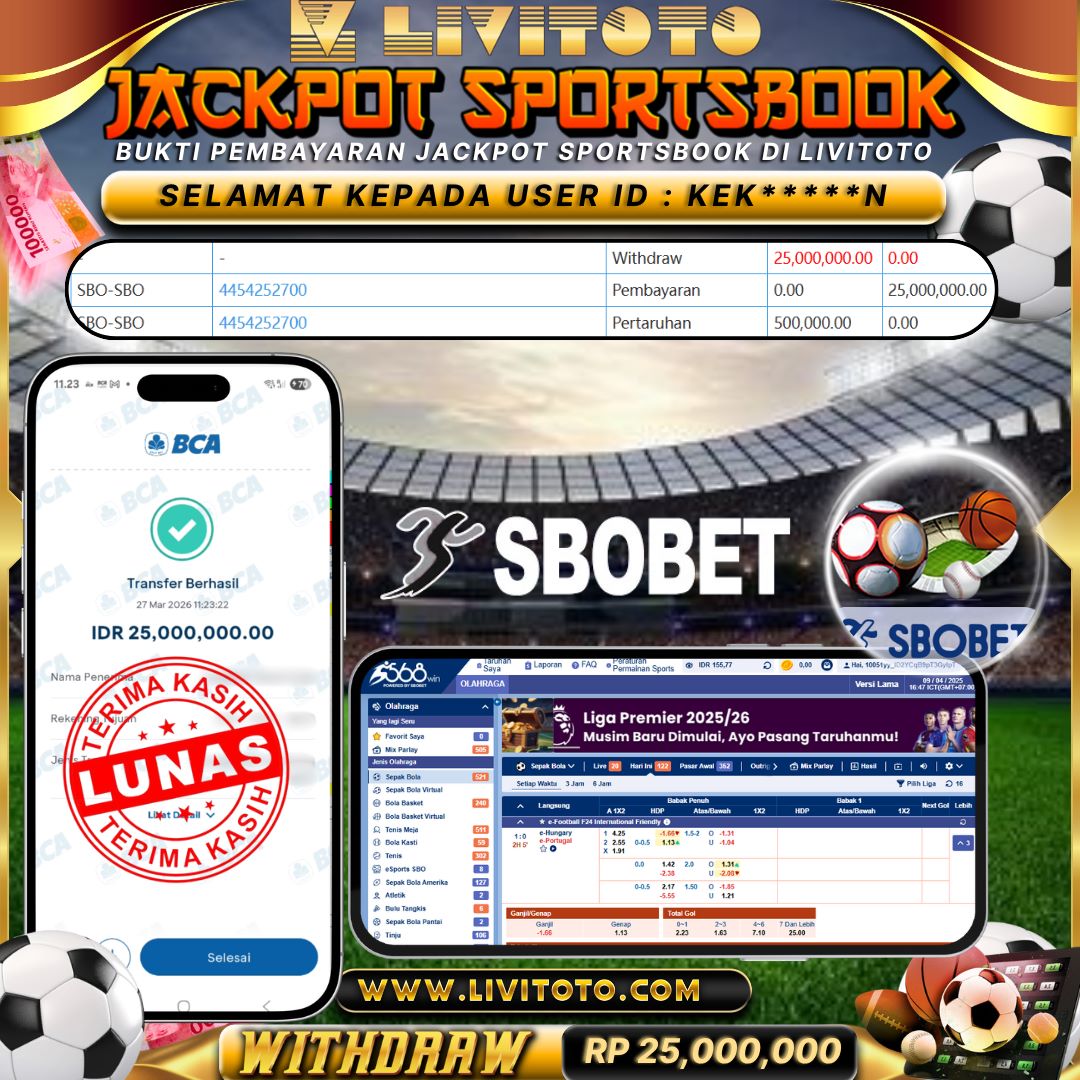 LIVITOTO JACKPOT SPORTSBOOK Rp 25,000,000,-