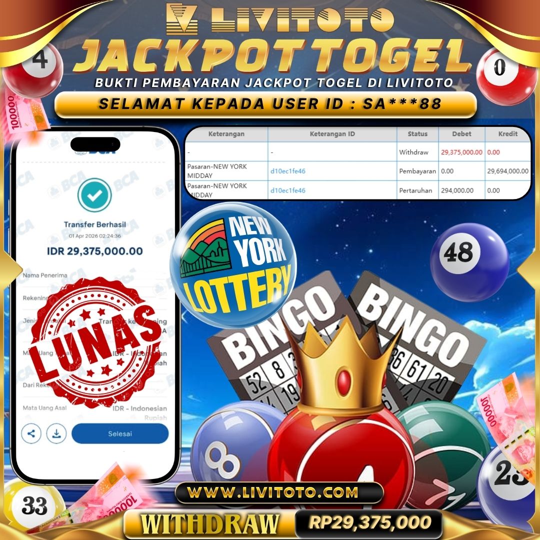 LIVITOTO JACKPOT TOGEL Rp 29,375,000,-