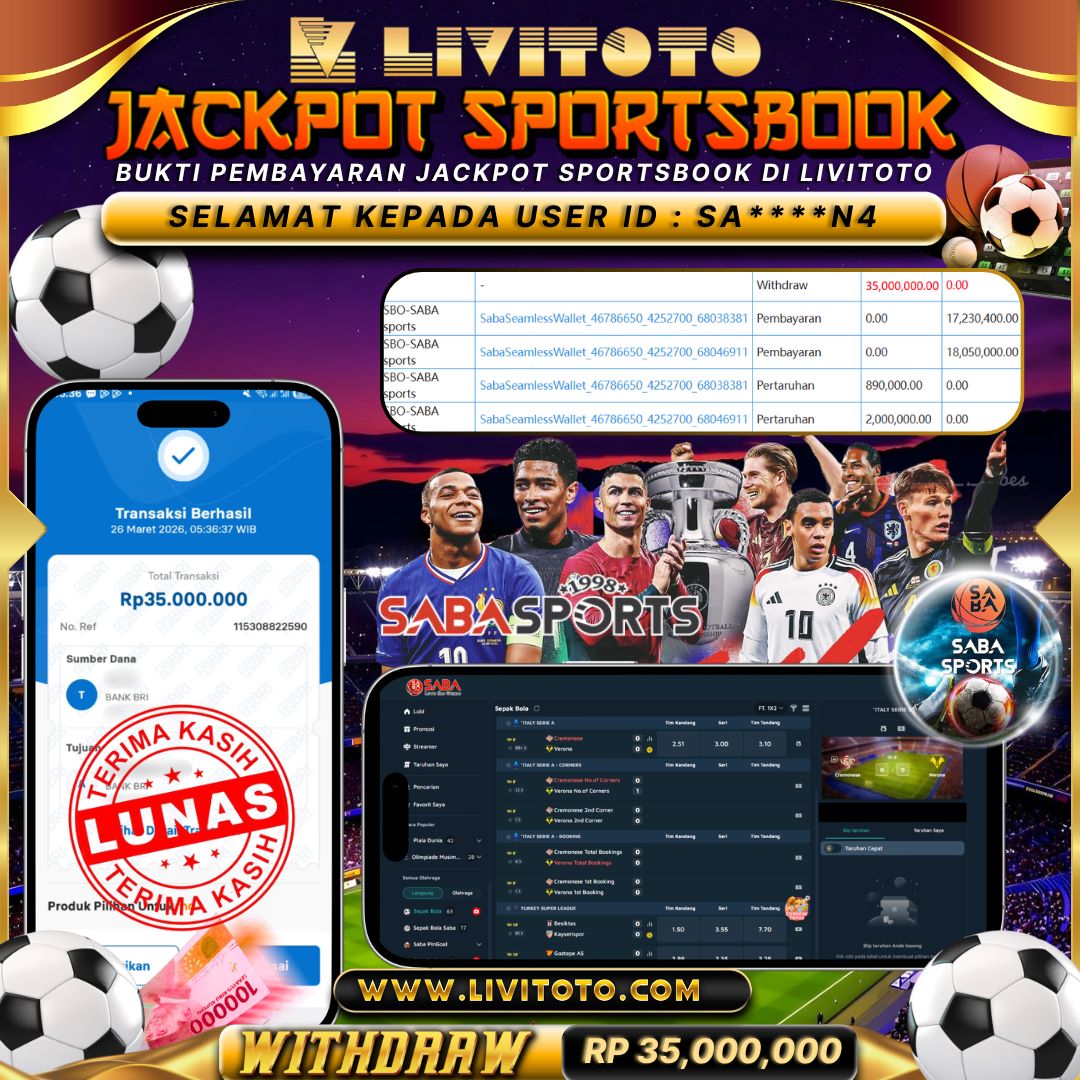 LIVITOTO JACKPOT SPORTSBOOK Rp 35,000,000,-