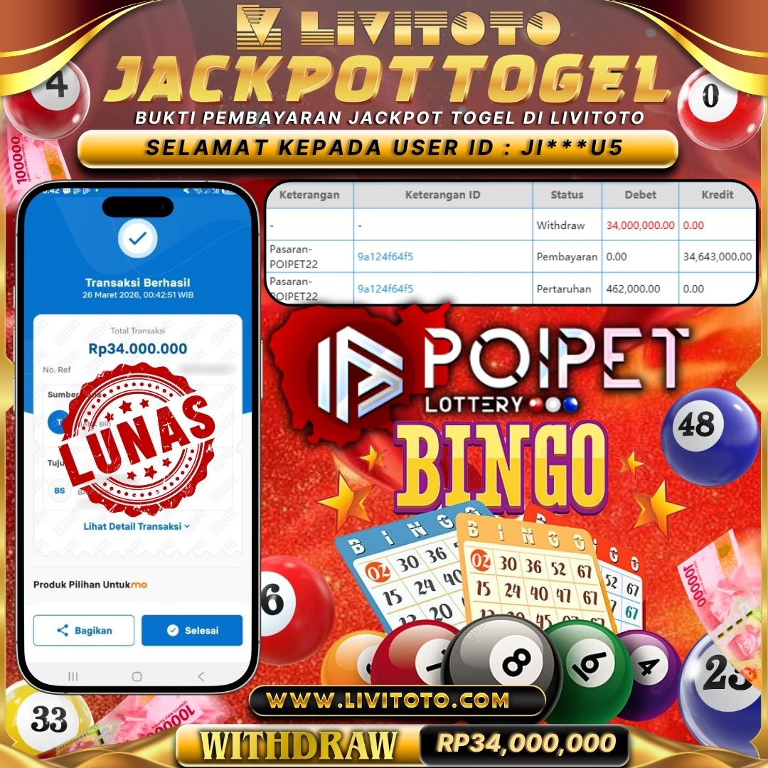 LIVITOTO JACKPOT TOGEL Rp 34,000,000,-