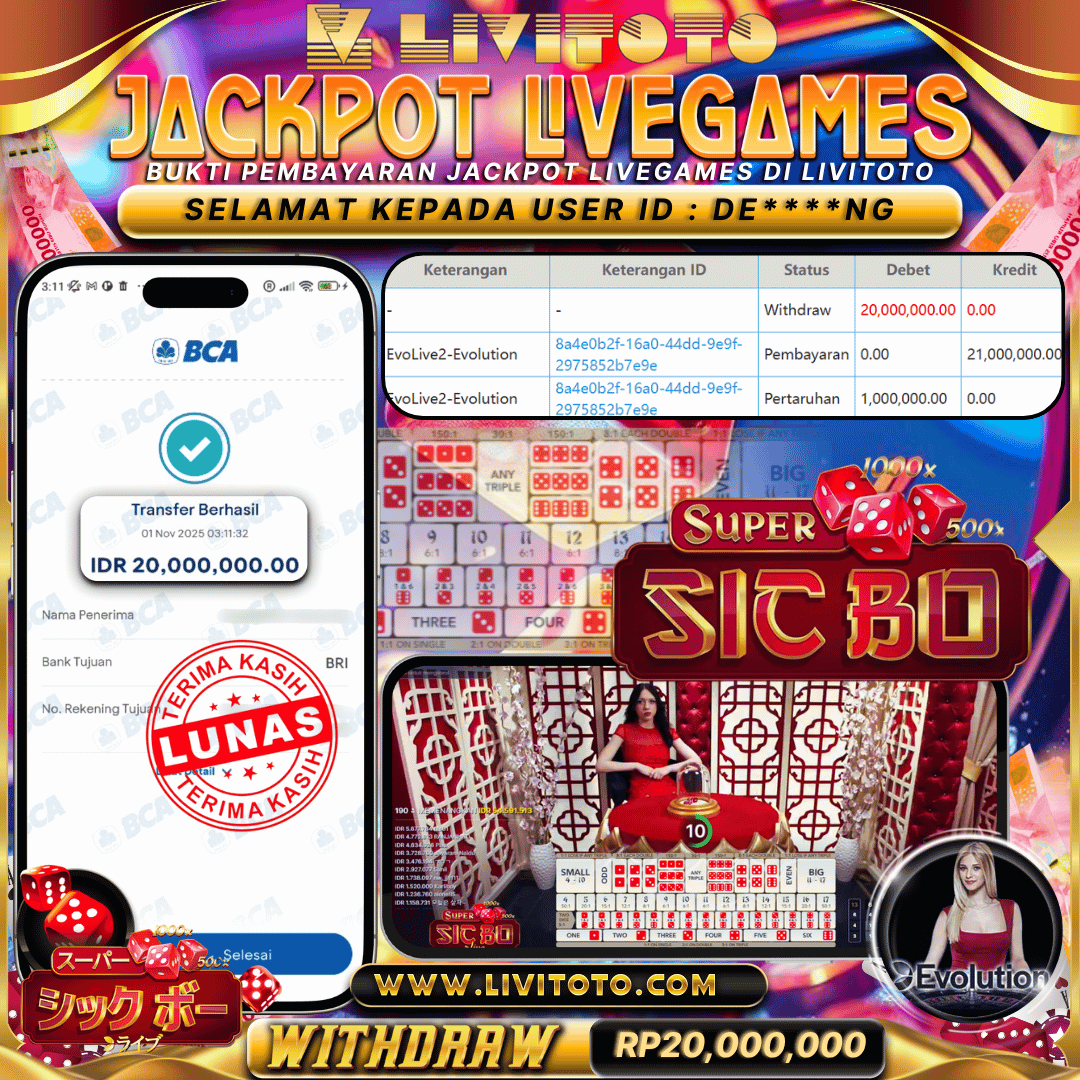 LIVITOTO JACKPOT LIVEGAME Rp 20,000,000,-