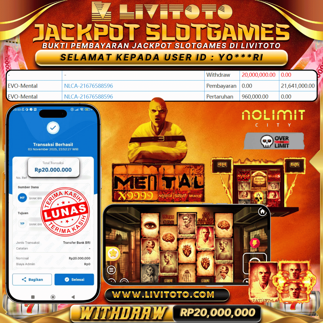 LIVITOTO JACKPOT SLOT Rp 20,000,000,-