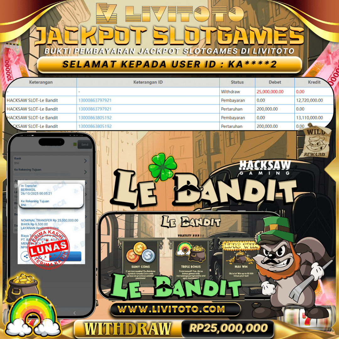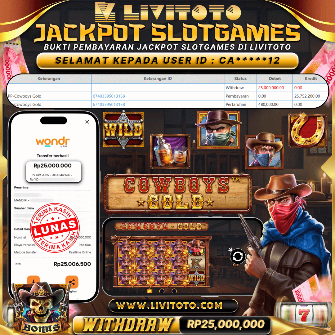 LIVITOTO JACKPOT SLOT Rp 25,000,000,-