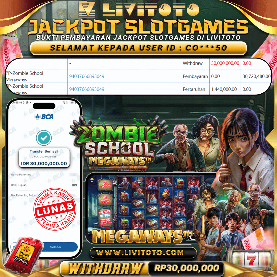 LIVITOTO JACKPOT SLOT Rp 30,000,000,-
