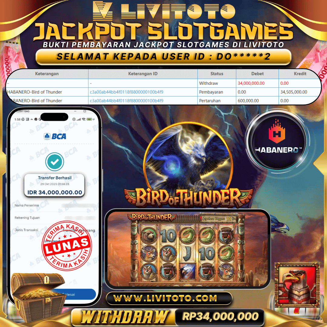LIVITOTO JACKPOT SLOT Rp 34,000,000,-