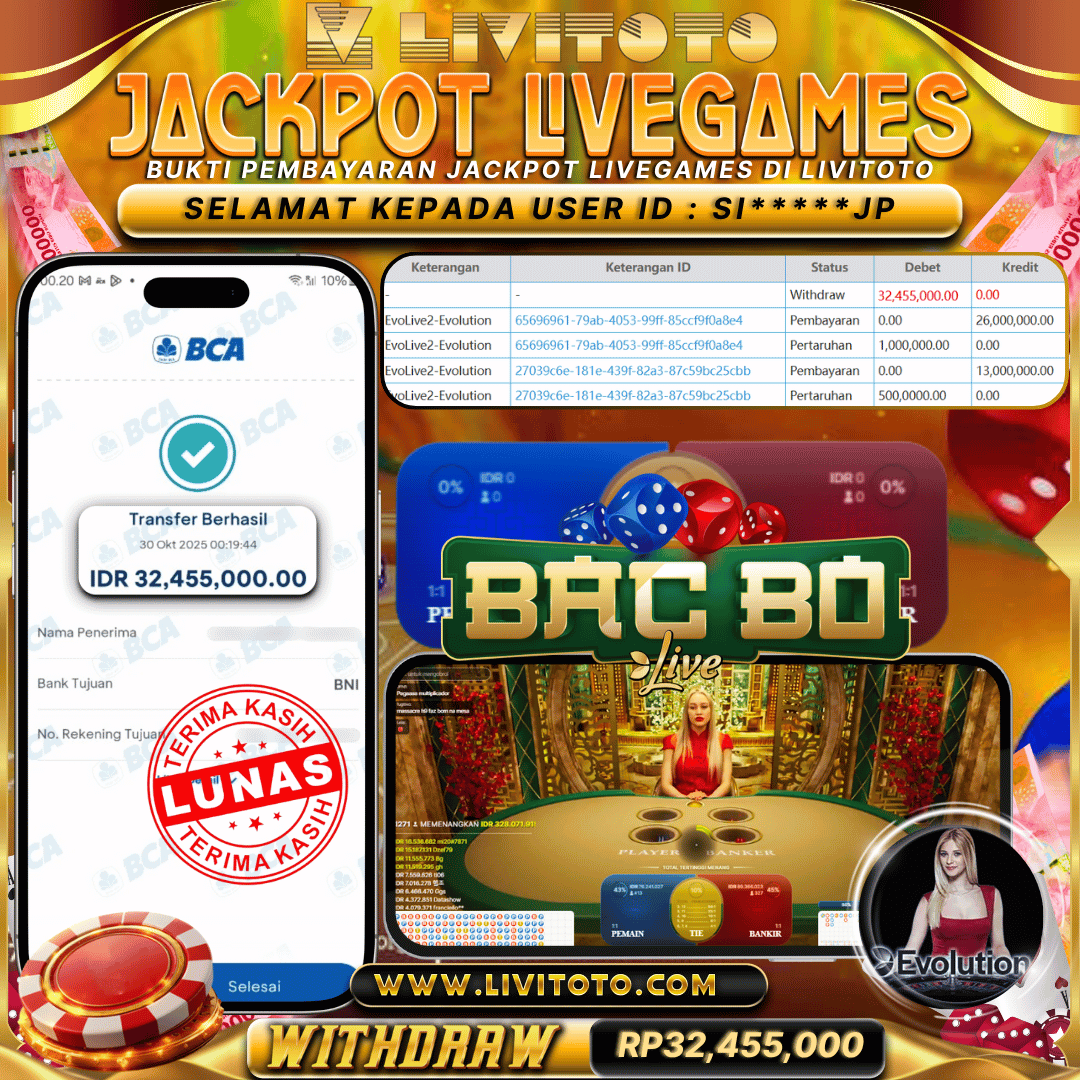 LIVITOTO JACKPOT LIVEGAME Rp 32,455,000,-