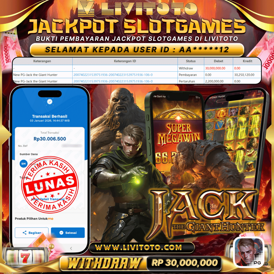 LIVITOTO JACKPOT SLOT Rp RP 30,000,000,-