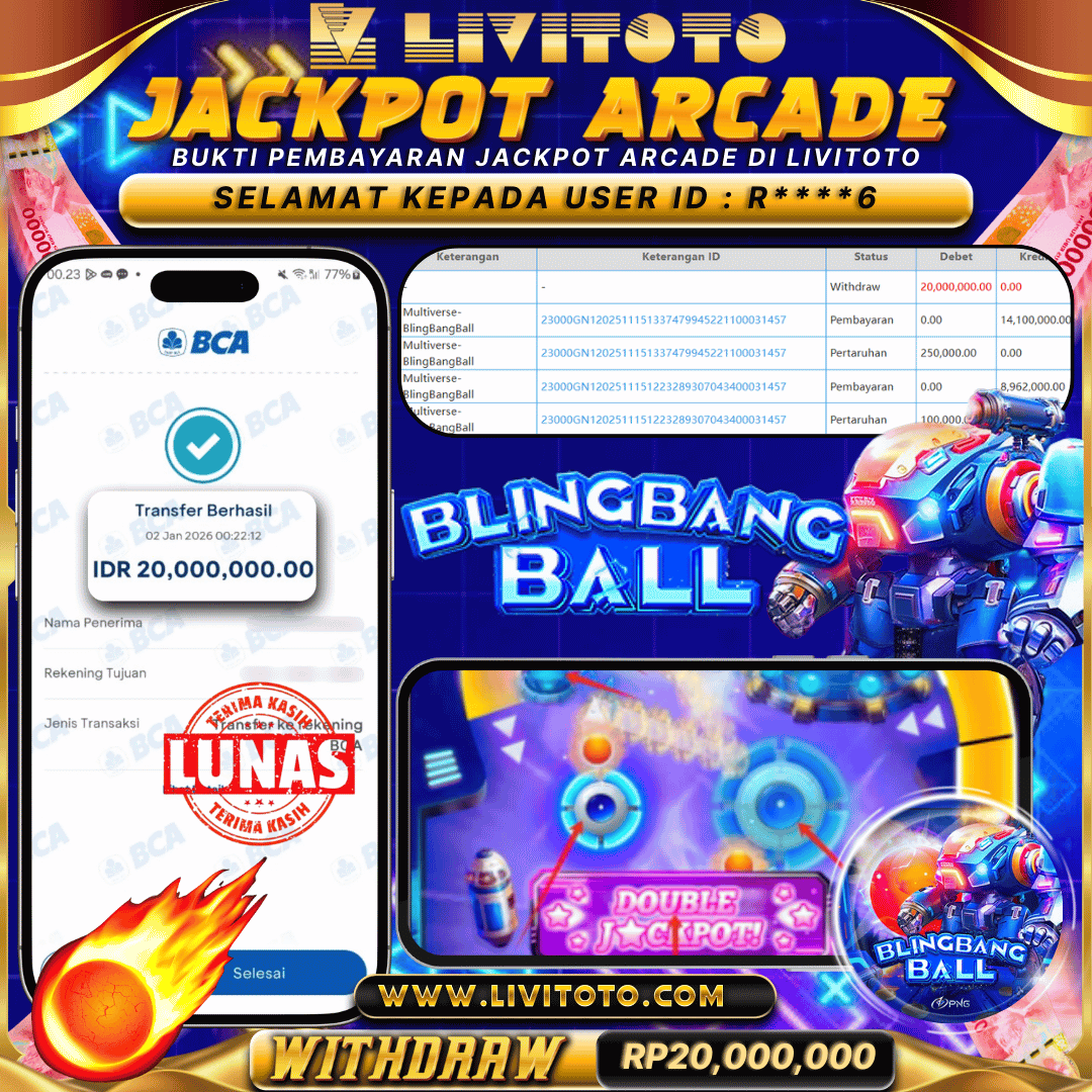 LIVITOTO JACKPOT ARCADE Rp 20,000,000,-