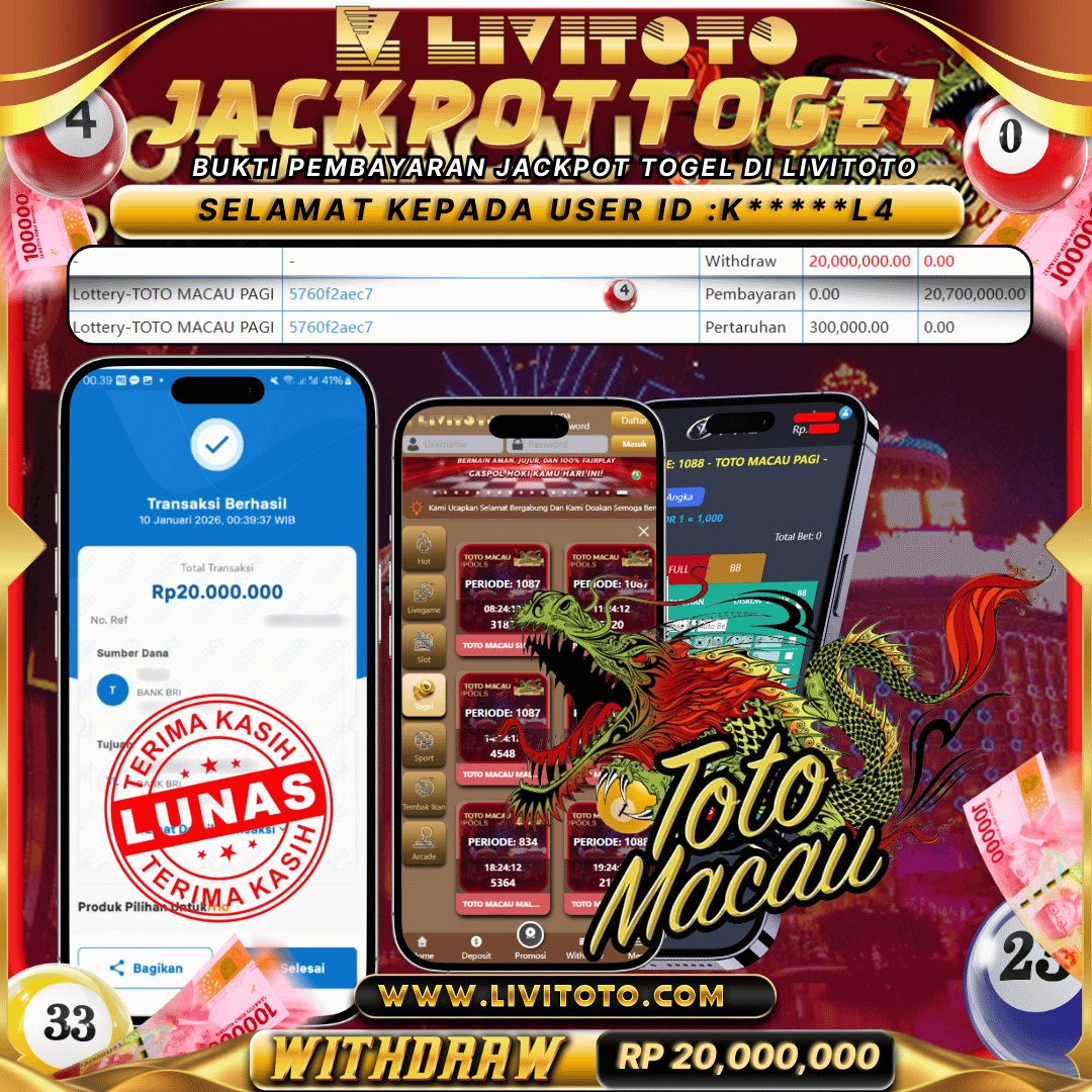 LIVITOTO JACKPOT TOGEL Rp 20,000,000,-