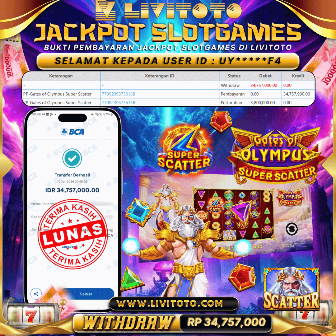 LIVITOTO JACKPOT SLOT Rp RP 34,757,000,-