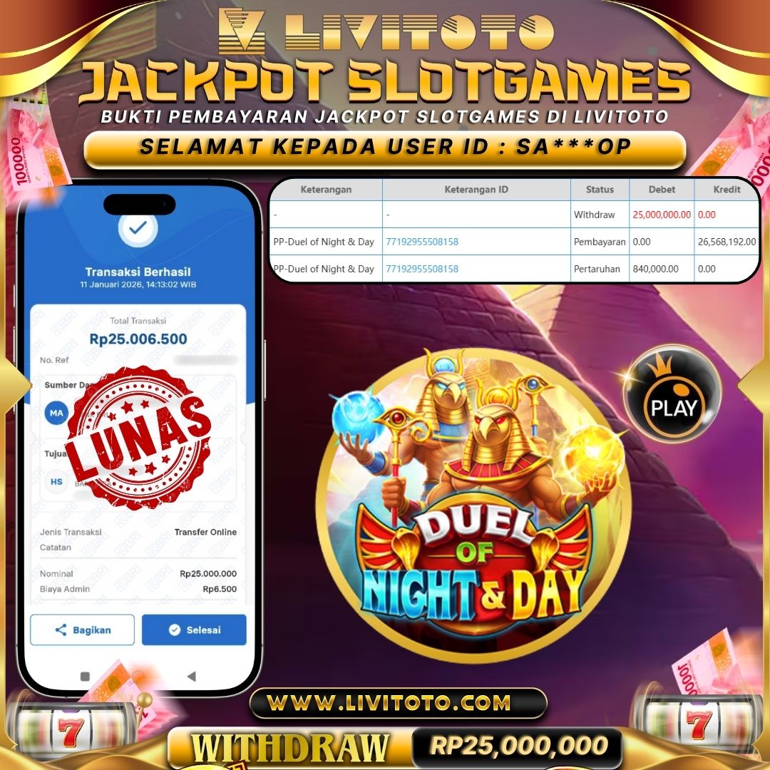 LIVITOTO JACKPOT SLOT Rp RP 25,000,000,-
