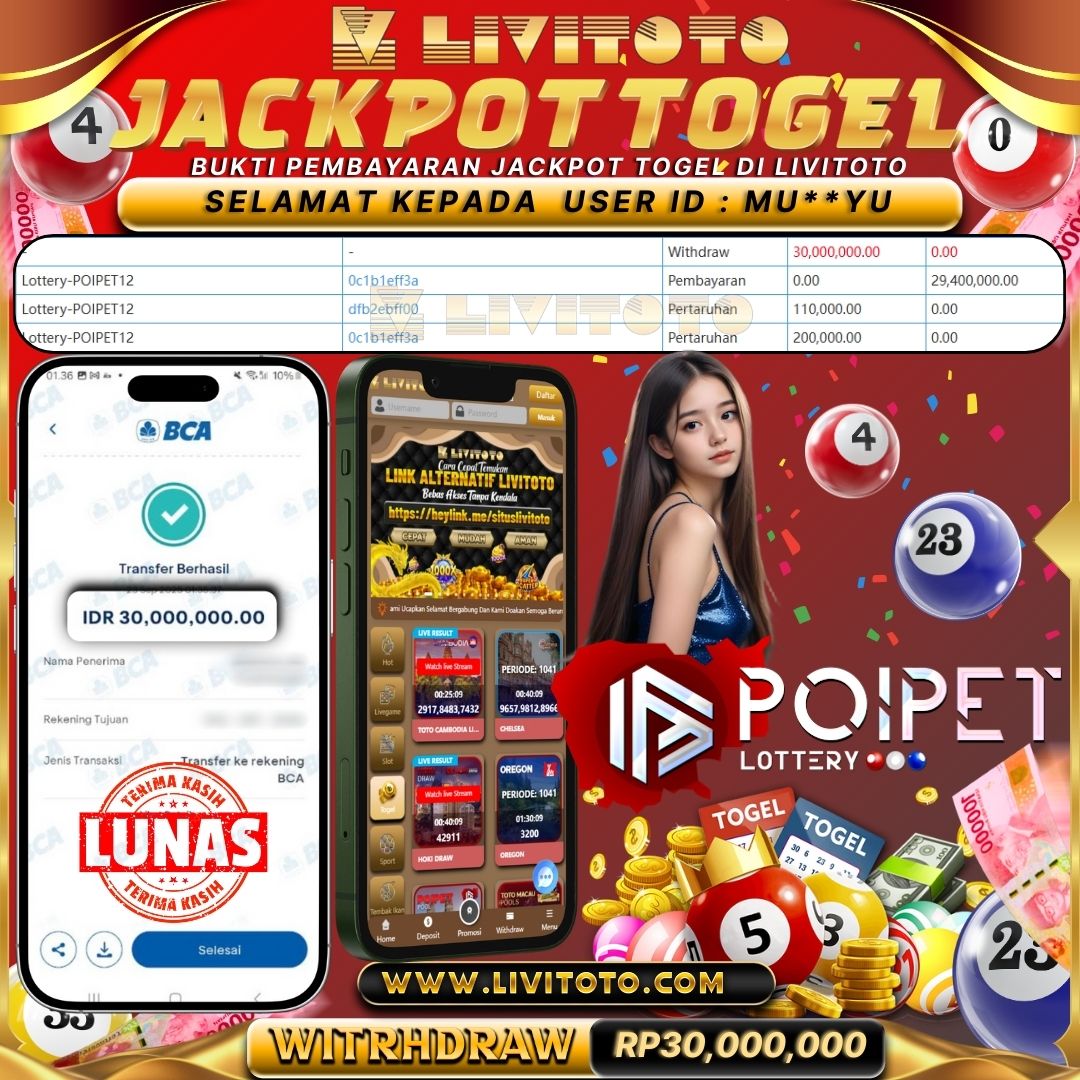 LIVITOTO JACKPOT TOGEL Rp 30,000,000,-
