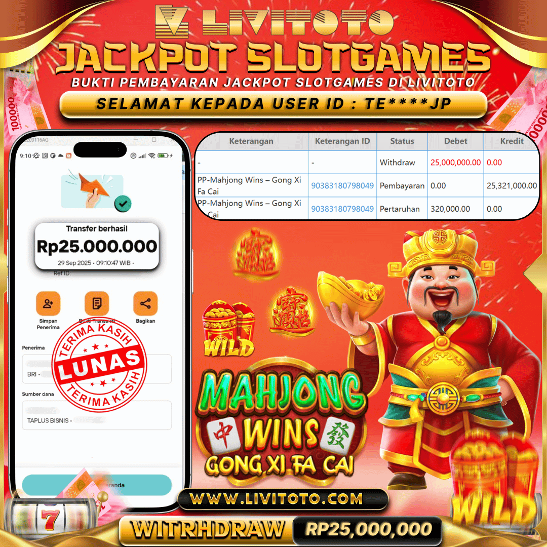 LIVITOTO JACKPOT SLOT Rp 25,000,000,-