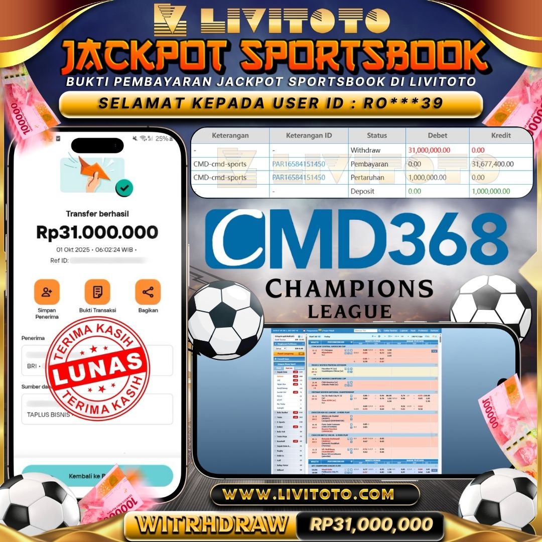 LIVITOTO JACKPOT SPORTBOOK Rp 31,000,000,-
