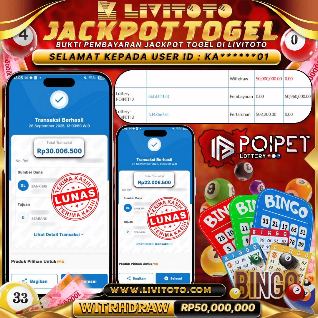 LIVITOTO JACKPOT TOGEL Rp 50,000,000,-