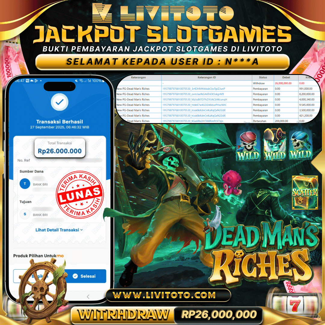 LIVITOTO JACKPOT SLOT Rp 26,000,000,-
