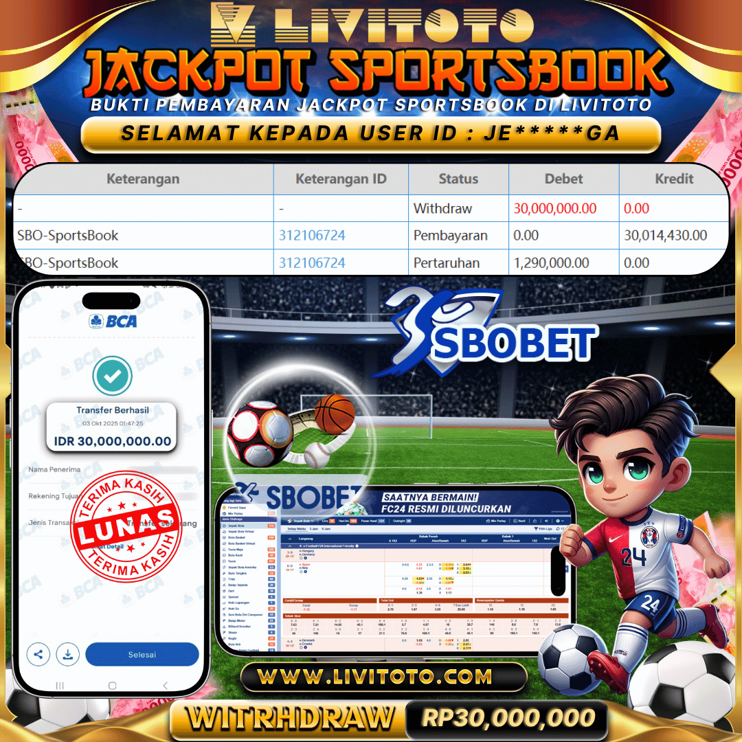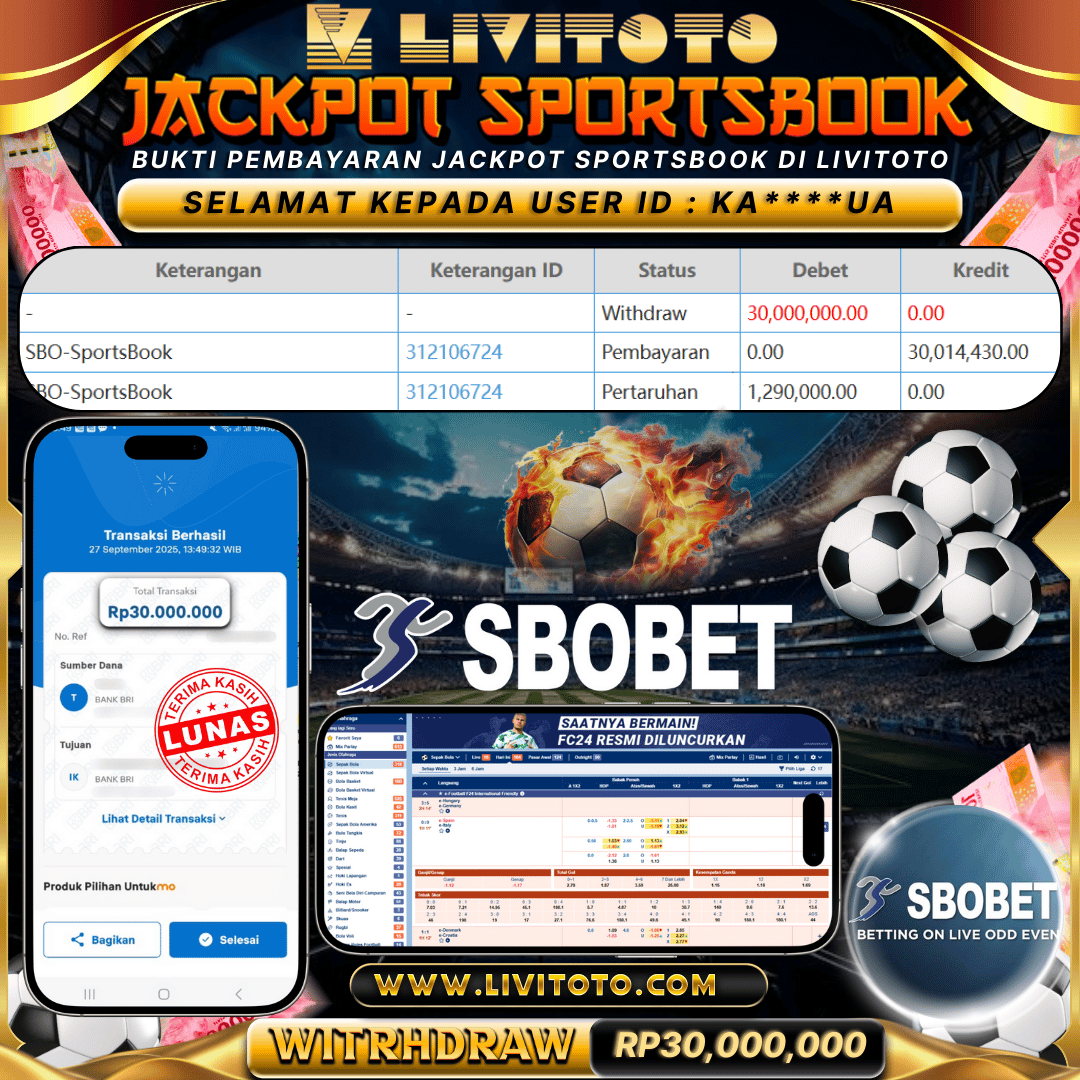 LIVITOTO JACKPOT SPORTBOOK Rp 30,000,000,-