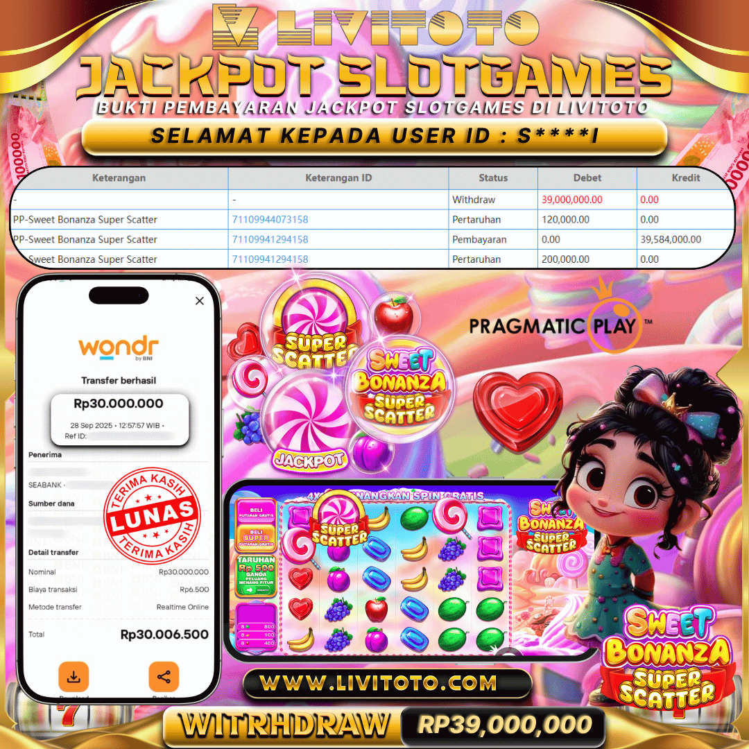 LIVITOTO JACKPOT SLOT Rp 39,500,000,-