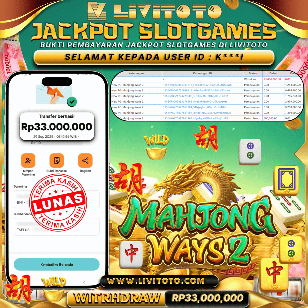 LIVITOTO JACKPOT SLOT Rp 33,000,000,-