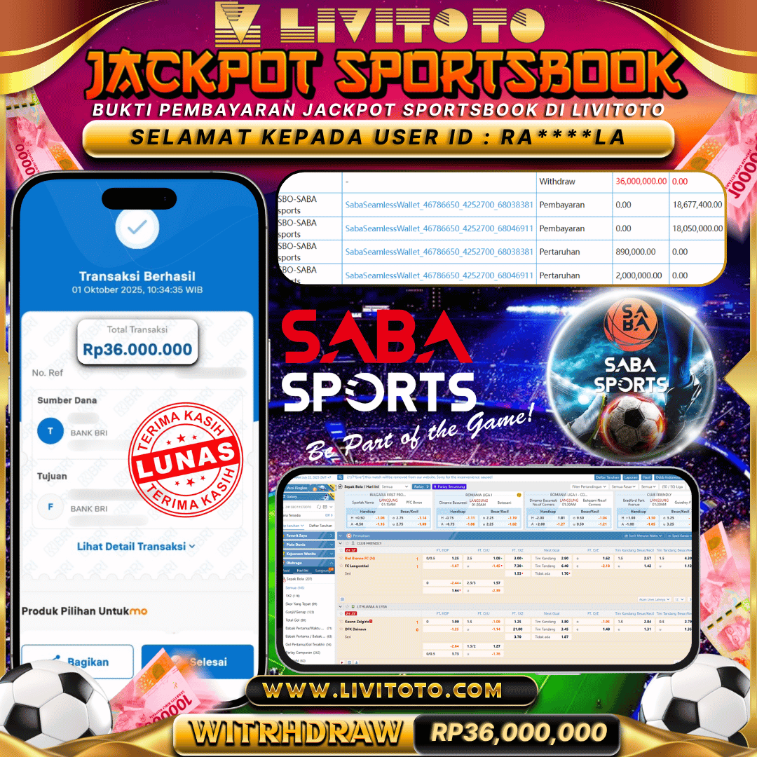 LIVITOTO JACKPOT SPORTBOOK Rp 36,000,000,-
