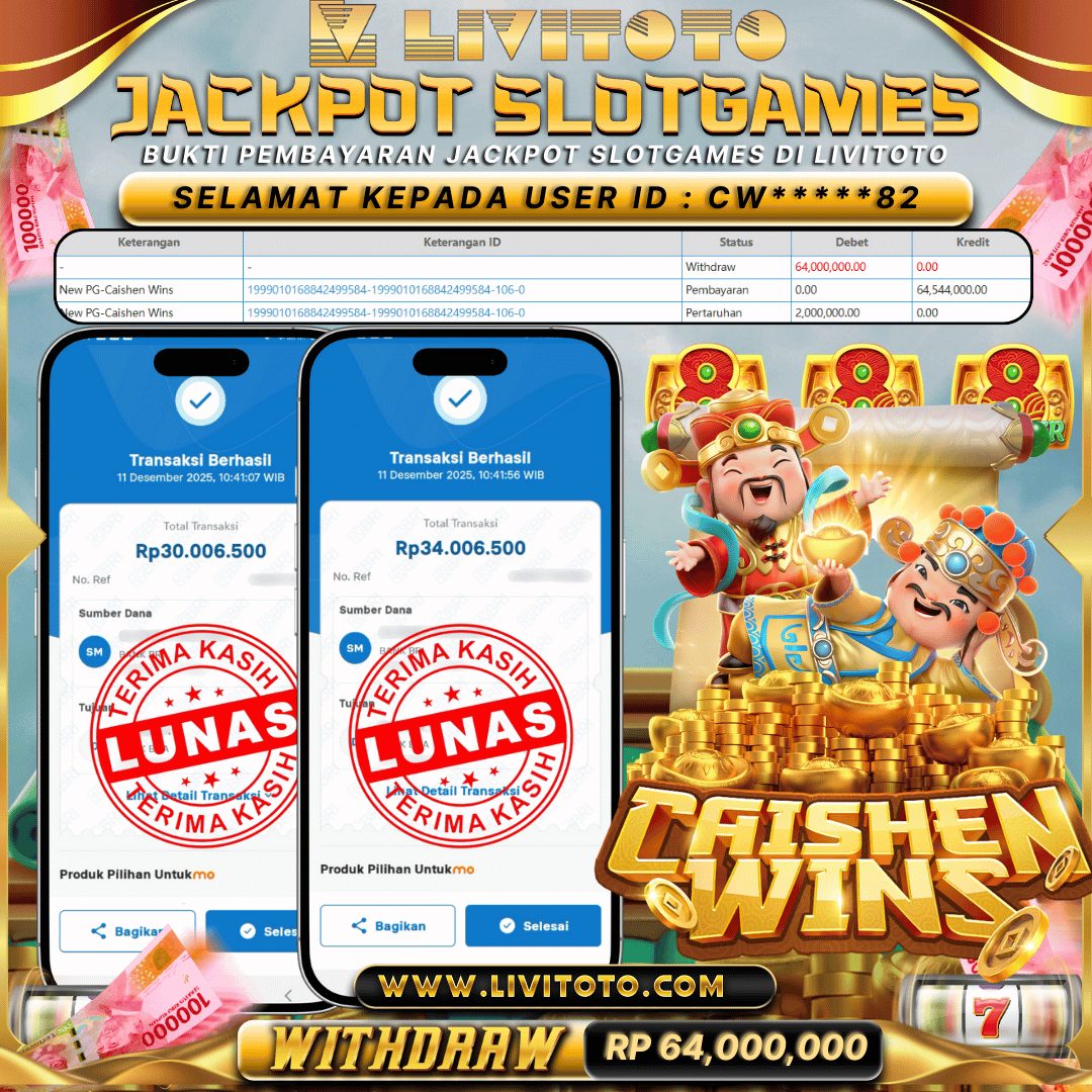 LIVITOTO JACKPOT SLOT Rp RP 64,000,000,-