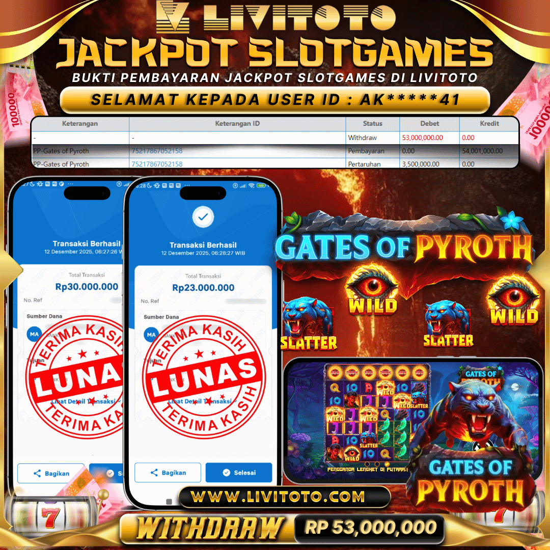 LIVITOTO JACKPOT SLOT Rp RP 53,000,000,-