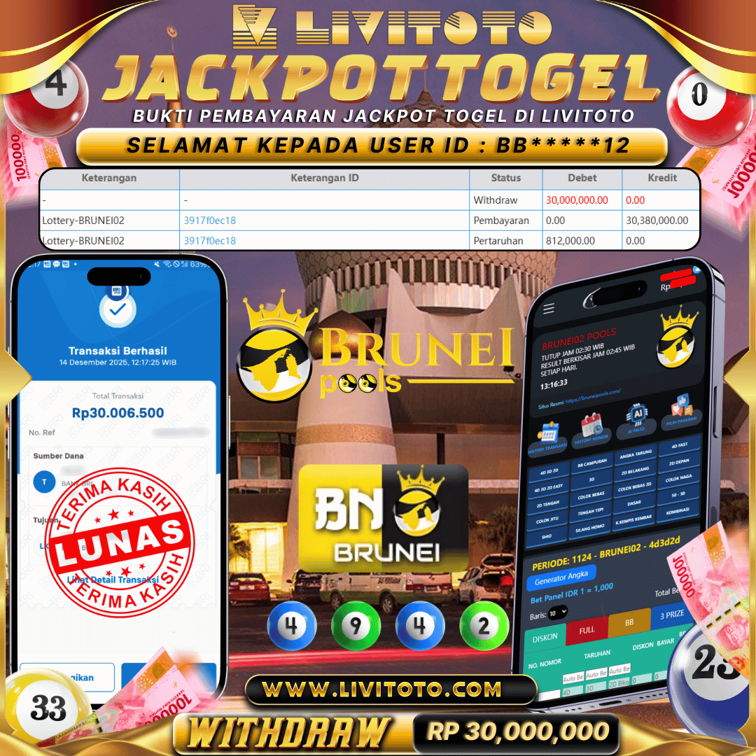 LIVITOTO JACKPOT TOGEL Rp 30,000,000,-