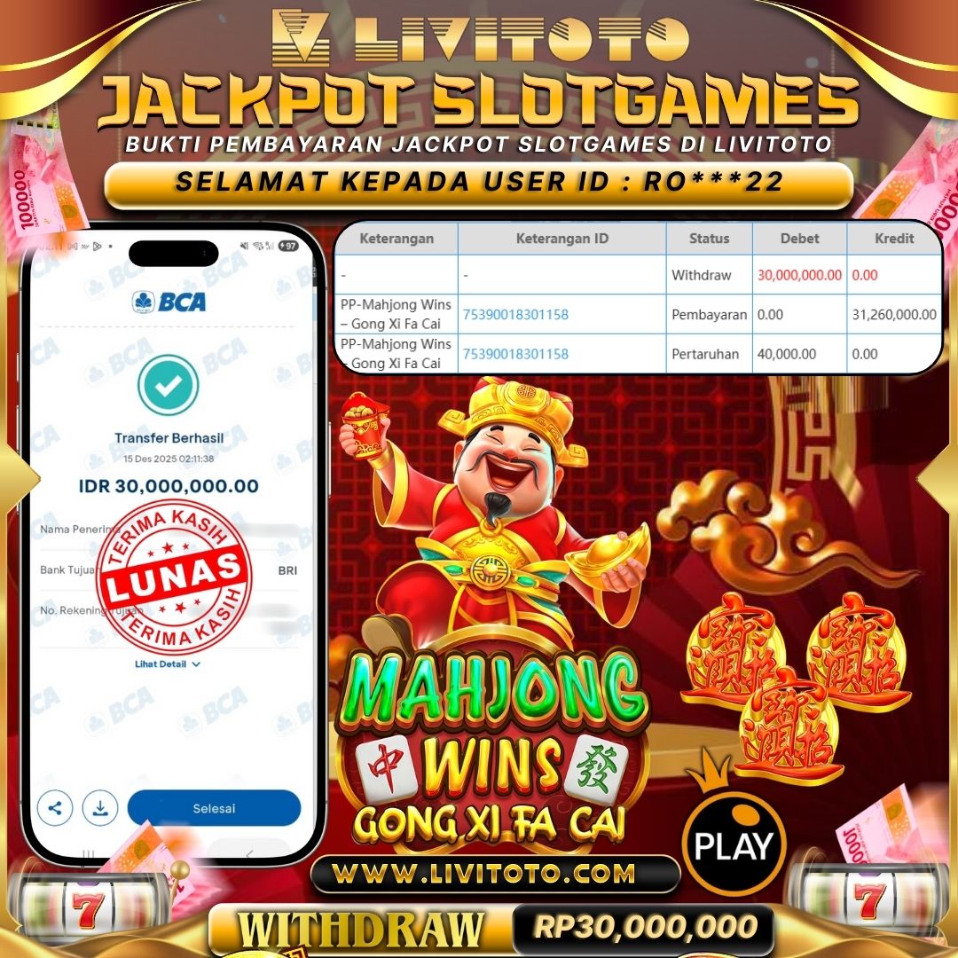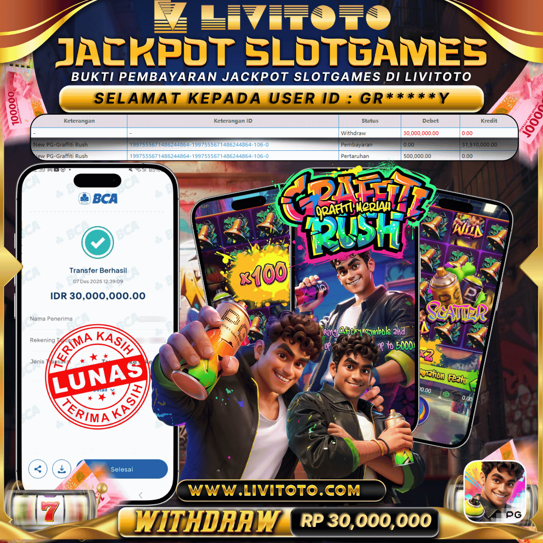 LIVITOTO JACKPOT SLOT Rp RP 30,000,000,-