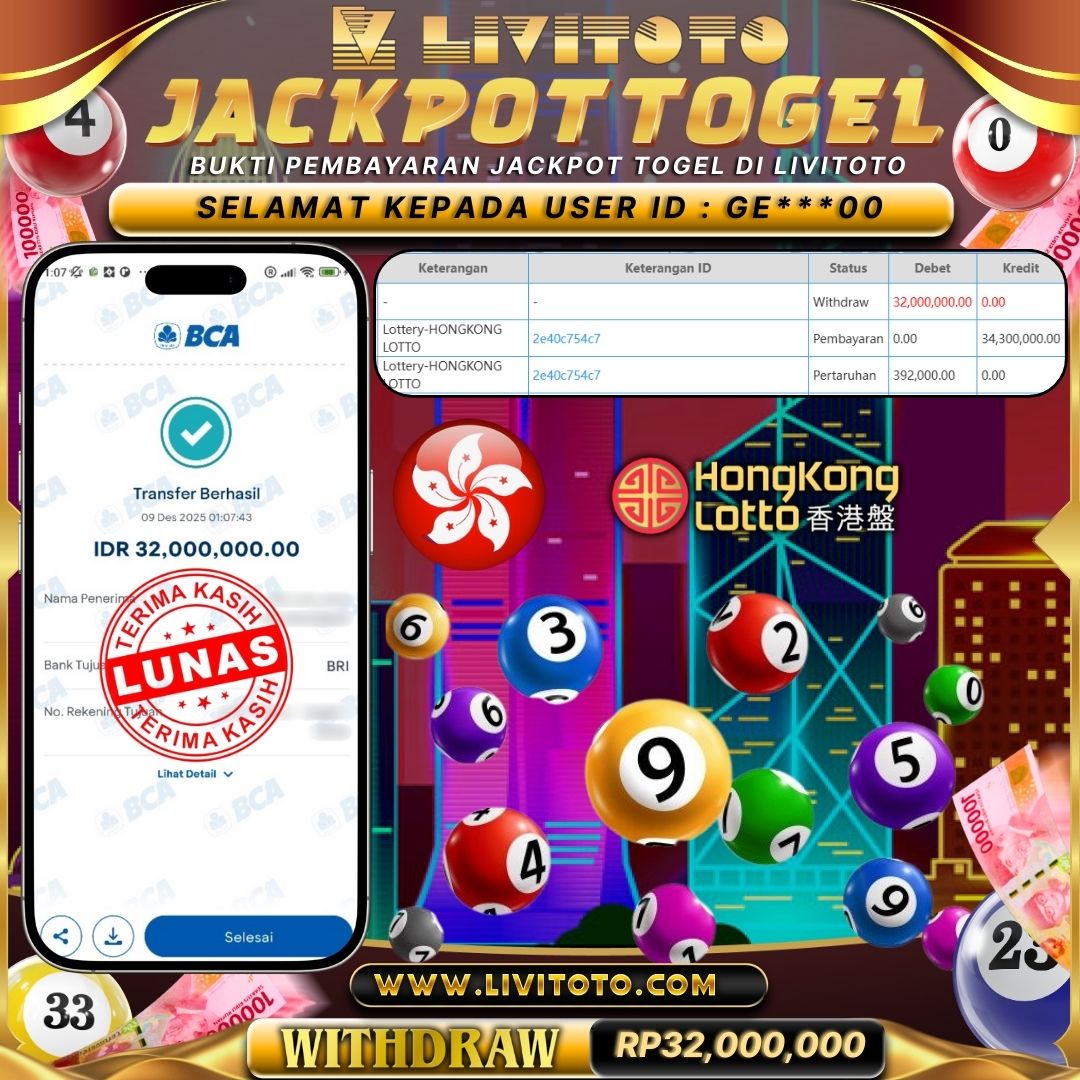 LIVITOTO JACKPOT TOGEL Rp 32,000,000,-