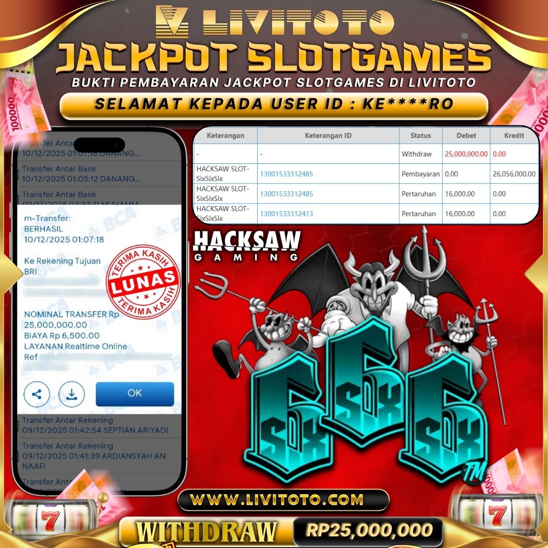 LIVITOTO JACKPOT SLOT Rp RP 25,000,000,-