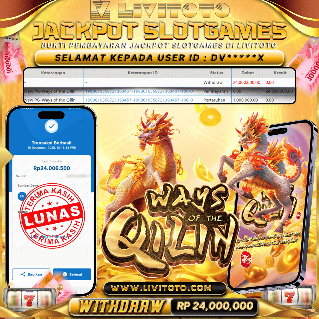 LIVITOTO JACKPOT SLOT Rp RP 24,000,000,-