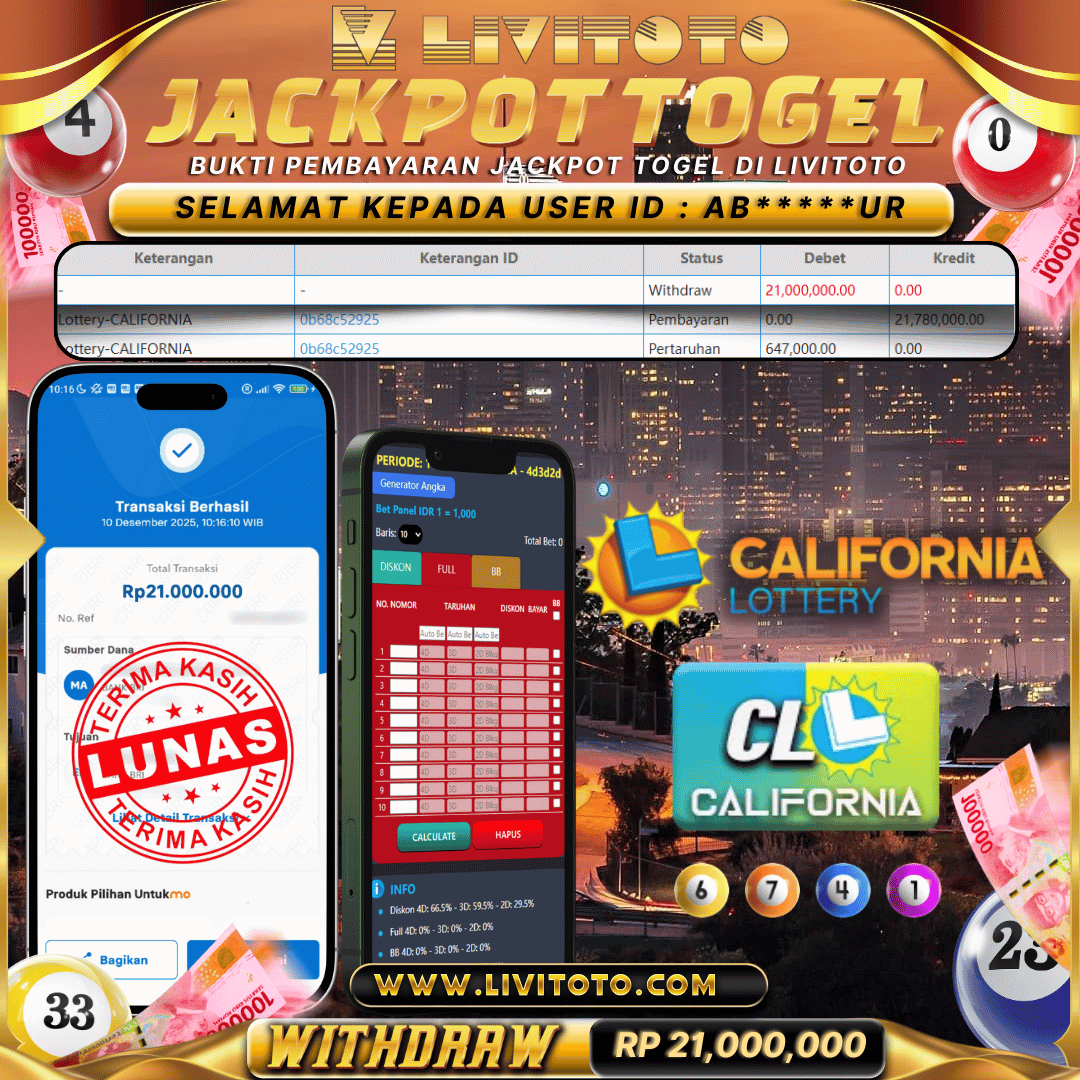 LIVITOTO JACKPOT TOGEL Rp 21,000,000,-